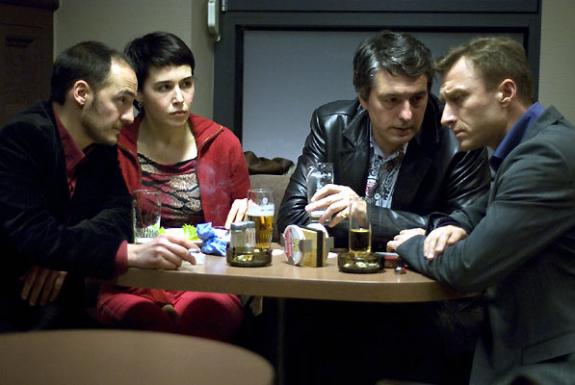 The Dardennes’ screenplay succeeds best where it is posing these questions, and the strongest scenes are based on this: some blackly comic scenes where Lorna realizes what she must do in order to obtain a quickie divorce, and one memorably painful scene to watch in a seedy bar where she must slow-dance with her proposed Russian husband, set to some ultra-cheesy music. The constant changing hands of wads of Euro notes, a recurring motif, illustrates what is at root ultimately driving everything along. The problem is that in order to create the situations, some rather ill-judged plot contrivances have to be thrown in; despite for the majority of their screentime together Lorna being aloof to Claudy’s gestures of friendship, within a few short frames we are made to believe that she harbours a passion for him, whether physical or spiritual. Almost immediately afterwards, a major plot development occurs offscreen, and the film is suddenly turned on its head again.