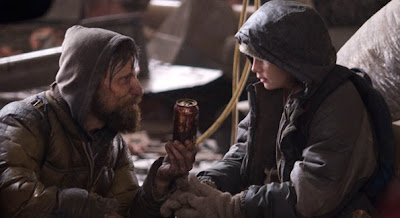 What is fascinating is the divergence in political attitudes between father and son. The older, more world-weary character sees fear and danger behind every corner and in every person they meet, and is careful to delineate to his son the idea of they as the ‘good guys’ and others as the ‘bad guys’; the child, seeing through kinder but perhaps more naive eyes is less inclined to believe his father’s snap judgements, and as the film progresses is clearly forming a moral code of his own, constantly questioning that of his father. Perhaps ‘before’ the father was less wary of others, while the child, born into this new world, lacks this frame of reference. Their moralities, then, are hugely subjective, borne out of circumstance and forged by experience.