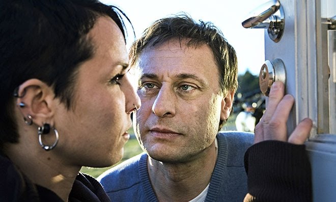When compared to the preposterousness of comparable Hollywood leading females – stand up, Keira Knightley’s Domino – she carries a much more believably tough persona, both mentally and physically, illustrated nowhere better than in the unsettling early scenes showing her abuse by her unmistakeably evil legal guardian Nils Bjurman. He, a respectable lawyer and apparent pillar of society, behind closed doors turns out to be a violent sadist towards his ward, yet as he explains to Lisbeth his position of power allows him to be able to get away with his violent fetishes unquestioned. A recurring undercurrent in the film will be not merely the misogyny of individuals, but its virtual enshrinement in the power structures of seemingly placid, progressive Swedish society.
