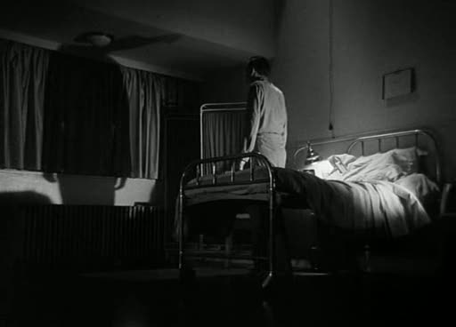 The lack of critical attention give to the Hearse Driver segment may mostly derive from Dearden’s unsubtle directing technique, in particular the way he over-emphasises key elements of the story through a series of clumsy zooms. The key central moment – a reveal from a darkened hospital room to daylight outside – lacks drama, and the sight of the horse-drawn hearse pales into insignificance when compared to the ethereal otherworldliness of Victor Sjöström’s Körkarlen (1921). The story is not entirely without visual merit: the shot of Granger emerging from his bed, casting a massive shadow on the curtain covering the hospital room’s window catches the eye, but there is too much that is forgettable in its short duration. Nevertheless, there are two items of note which will be echoed in later stories. Firstly, the sexual dynamic in the story: while in hospital Granger flirts with his nurse, a women who will later go on to marry. Secondly, the nature of his vision of the hearse, reality and unreality being separated by the frame of his hospital window. Both motifs will be repeated later.