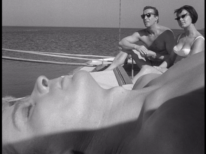 The first of Knife in the Water‘s Polanskian characteristics is the setting – though the water-borne location might suggest freedom and liberty, for Polanski it represents confinement and aimlessness. His best films – especially the so-called apartment trilogy of Rosemary’s Baby (1968), Repulsion (1965) and The Tenant (1976) – deal with characters existing in confined personal spaces, in a figurative sense cut off from the outside world, while other films such as Death & the Maiden (1994), Cul-De-Sac (1966) and his more recent film The Ghost Writer (2010) take place on windswept islands more literally cast adrift from the rest of humanity. Water is a key symbol in these latter films, and so too elsewhere: in Pirates (1986) and Bitter Moon (1992) Polanski situates us once again aboard ships, in Chinatown (1974) it is the core of the central mystery plot, and in Rosemary’s Baby, the first of Rosemary’s hallucinatory dreams takes place on a vessel on stormy seas.